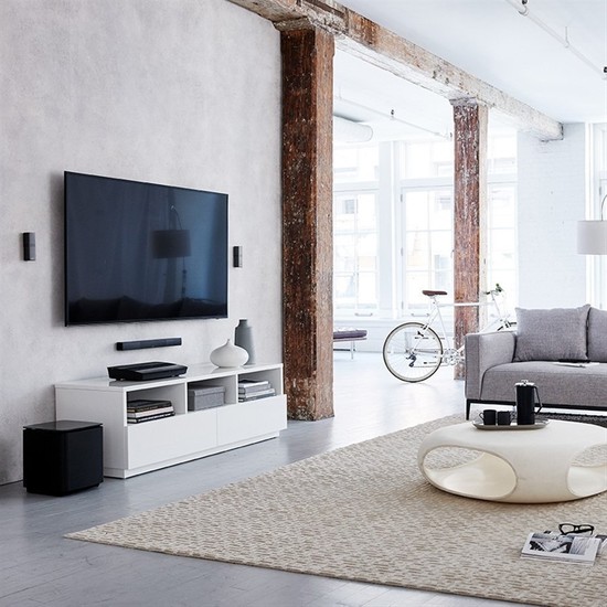 Small omnidirectional speakers, a wireless bass module and wireless rear surround speakers deliver an astonishing audio experience that melts luxuriously into your room.